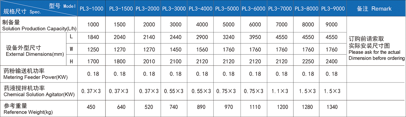 Het PL3-automatische poederbereidingssysteem met drie doos is verdeeld in een oplossende tank, een uithardingstank en een opslagtank. Het kan handmatig of automatisch worden gecontroleerd. Het systeem is compact in structuur, kan automatisch worden bediend en de voorbereidingsconcentratie is instelbaar.