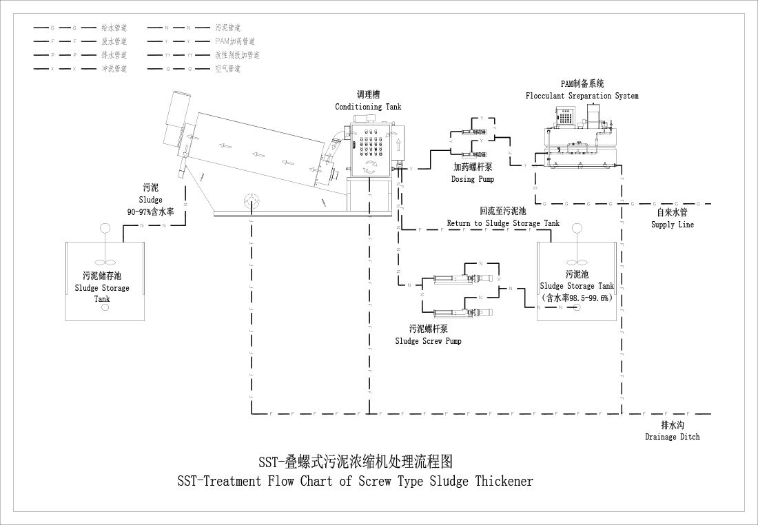 Het geconcentreerde lichaam van het volute slibverdikker bestaat uit een vaste ring en een actieve ring. Het belangrijkste deel is een schroefas .LT integreert de automatische regelkast, vlokkeringstank, slibconcentratiegedeelte en complete tank in één, onder de omstandigheden van volledig automatische werking, voltooi het slibconcentraat continu door slib en flocculant door mechanische meng volledig te mengen en te reageren om 3- 5 mm FLOC, Graviteit in het geconcentreerde lichaam te vormen; In het geconcentreerde deel blijft het slib vooruit bewegen met de rotatie van de schroefas, het volume van de hoofdkamer wordt continu gecomprimeerd en het filtraat wordt gefilterd flocculatie, het vaste vaste inhoud van het slib geleidelijk verhoogd om snel concentraatslib te bereiken; Terwijl de rotatie van de schroefas de bewegingsring aandrijft en de vaste ring zich snel concentreert, een apparaat om een continu zelfreinigingsproces te bereiken. Om het blokprobleem van het traditionele te voorkomen
